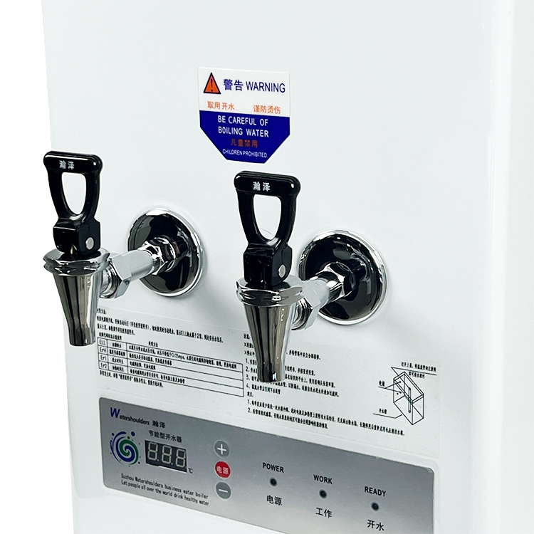 - Dual-tap commercial water boiler with separate hot & warm water outlets, 800 stainless steel heating, anti-scald faucets & 3-layer insulation. Ideal for cafes, tea shops & busy restaurants.