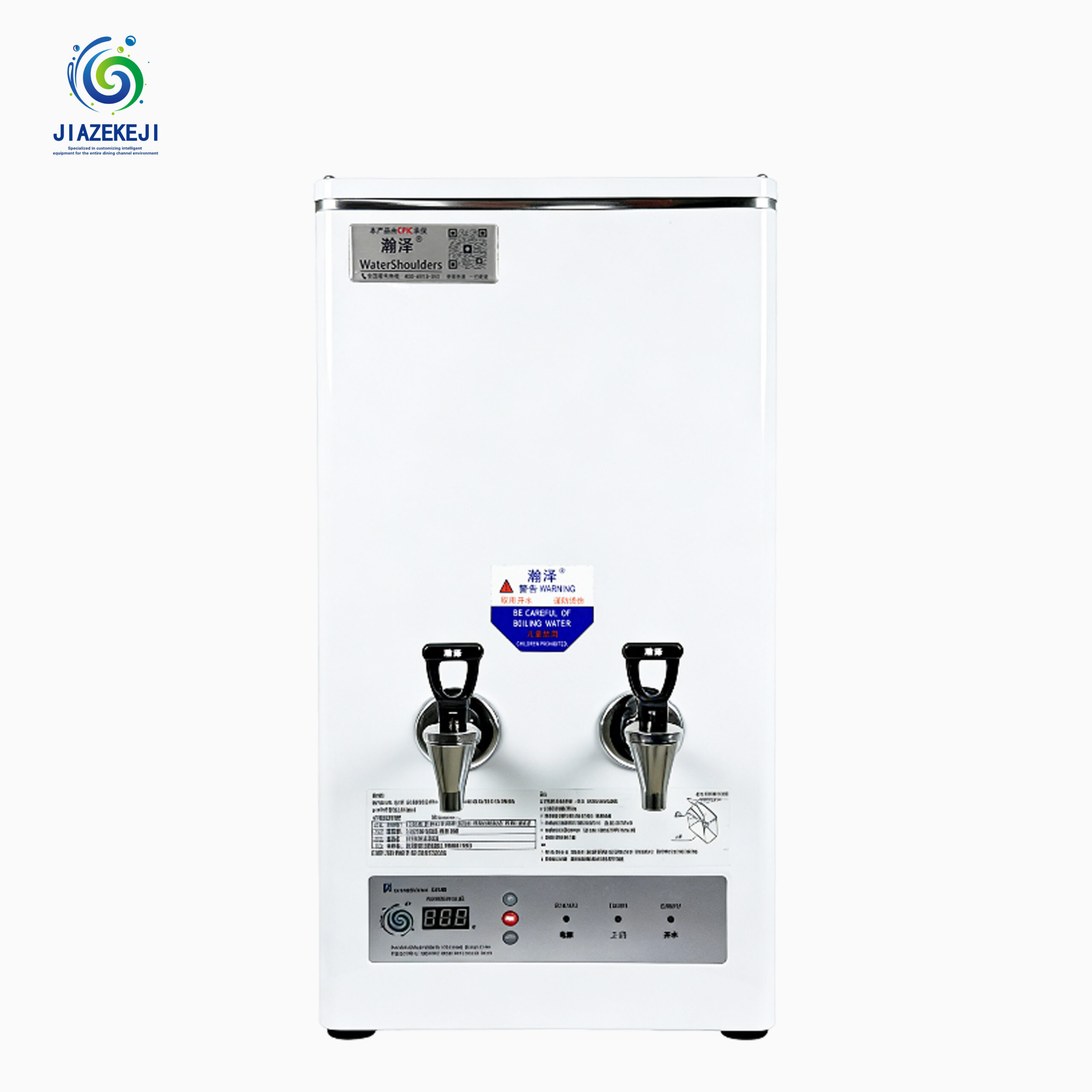 - JIAZEKEJI commercial water boiler with 800 stainless steel heating tube, single anti-scald faucet, digital temp display & Power/Work/Ready status lights. Delivers large flow for peak demand, energy-saving & CE certified.